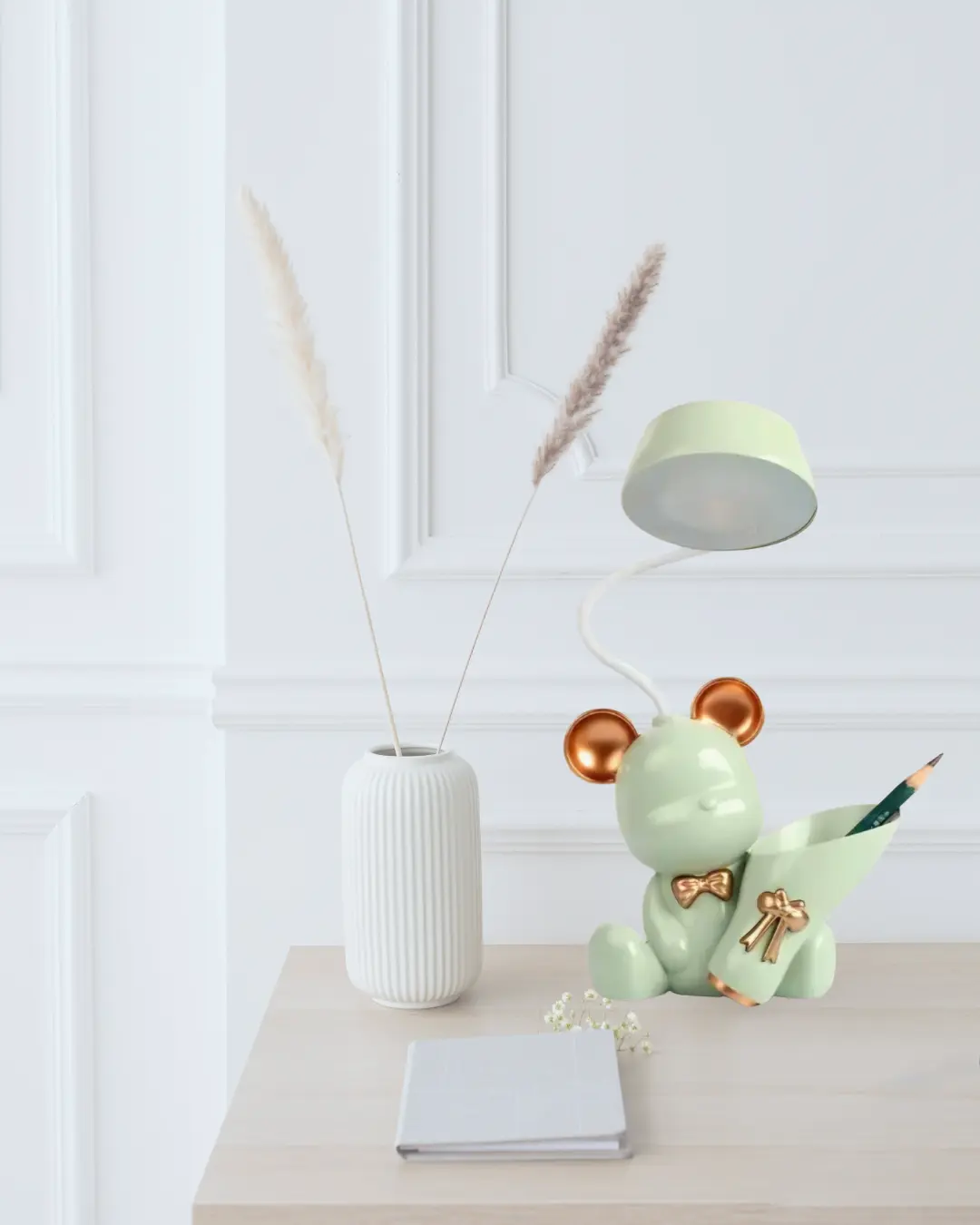 Lampara velador con porta lapiceras y sacapuntas incluido.El soporte del velador es flexible.Luz cálida LED. 5v 3W 1A.Conexión micro usb con cable USB-micro USB incluido.*Se envía color a disponibilidad