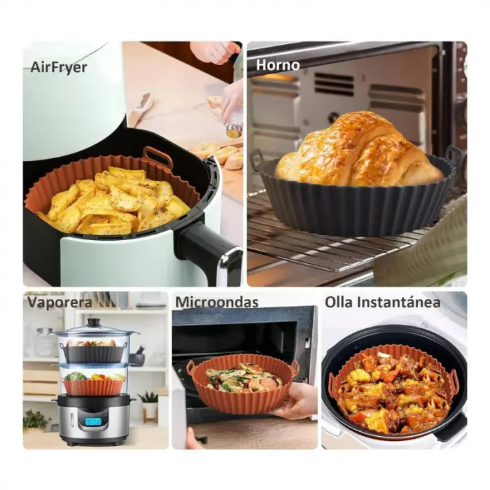 Fácil de limpiar y antiadherente: Evita eficazmente los residuos de alimentos o aceite en la freidora y evita que los alimentos se peguen a ella. Las bandejas de silicona para hornear son totalmente aptas para lavavajillas y te ayudan a ahorrar tiempo y energía después de cocinar.
