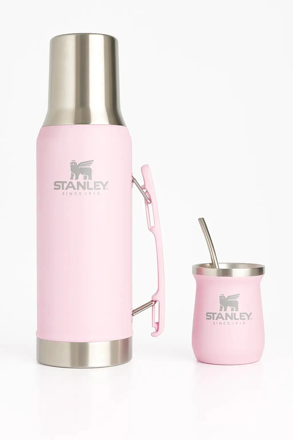 Combo mate Stanley. Fabricado en acero inoxidable, con recubrimiento powder coated antideslizante, conserva líquidos fríos o calientes por más de 24 horas gracias a su aislamiento de doble pared.