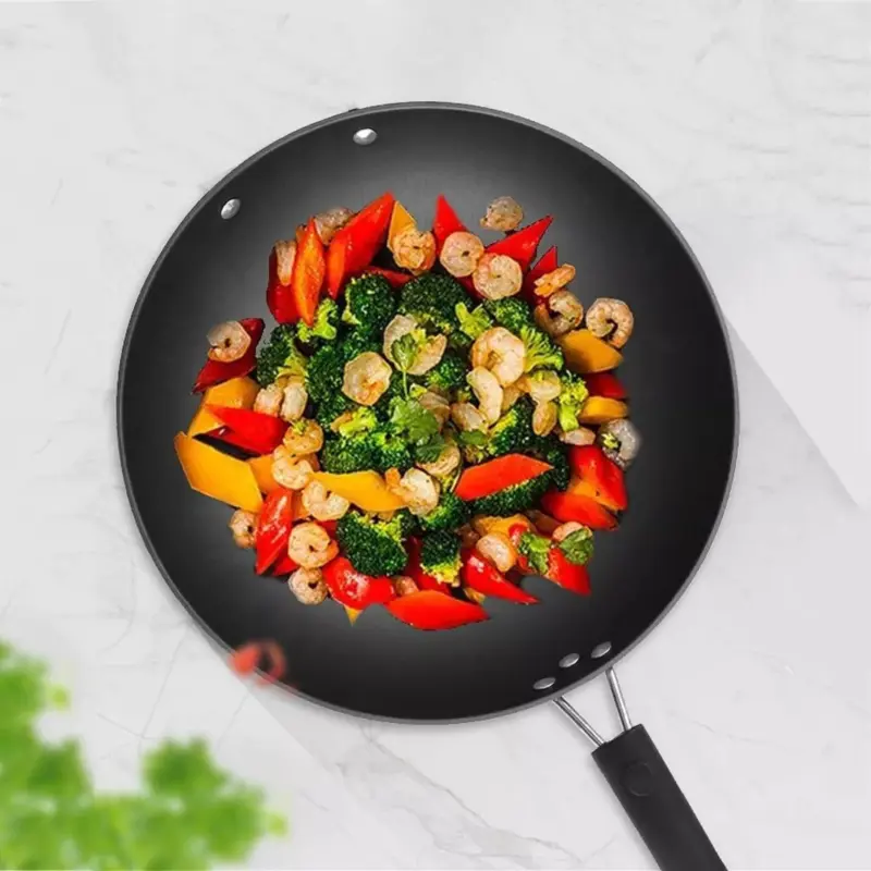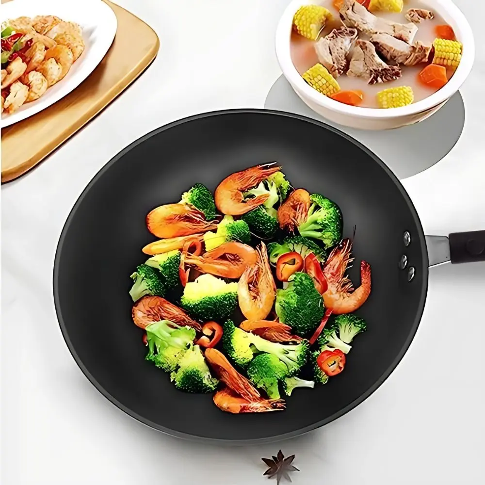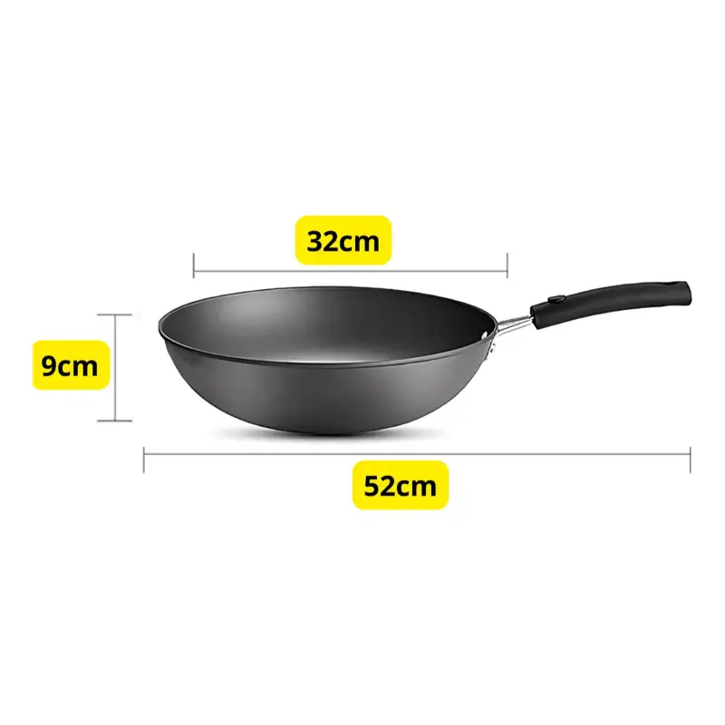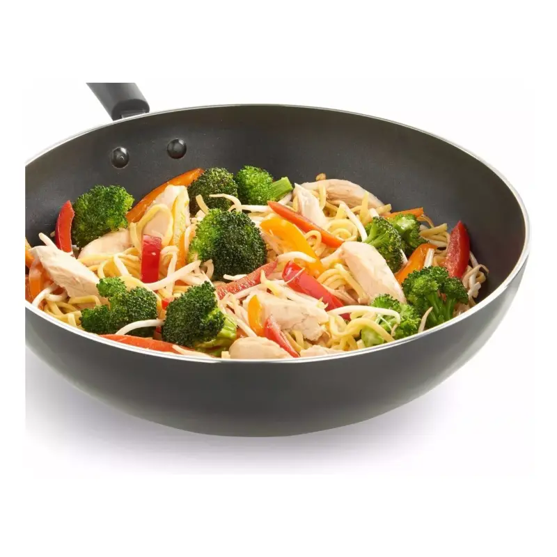 Wok de teflón reforzado: Alta densidad y rápida transferencia de calor.